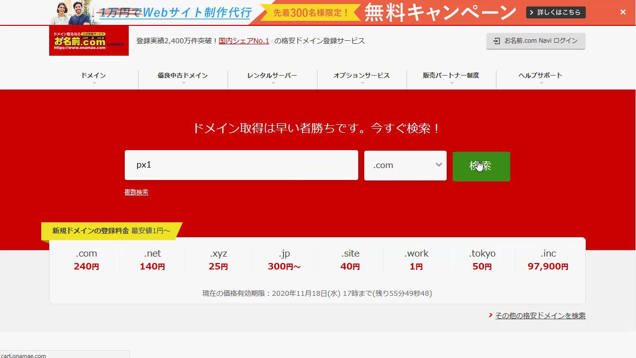ドメインは簡単に取得できます。今回はpx1.workというドメインをお名前.comで取得する手順をお届けします。