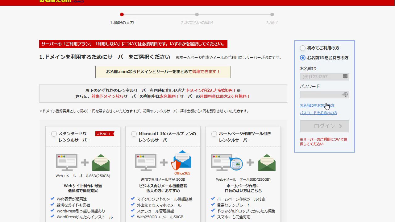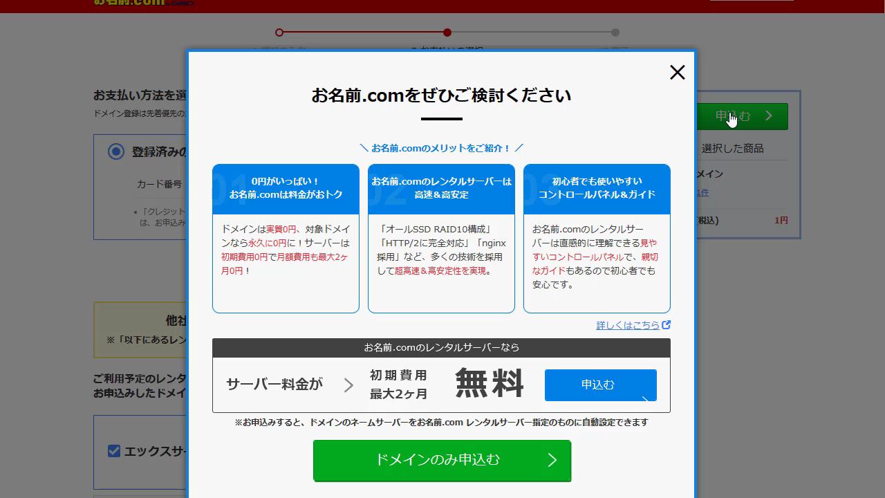 お名前.comはサーバーも販売しているのでセットでの購入を促してきます。