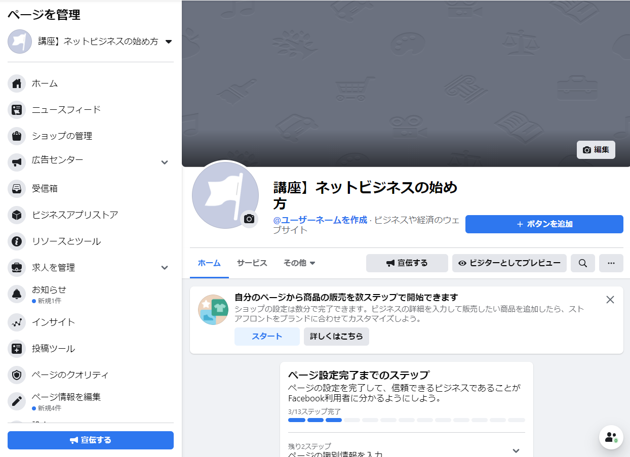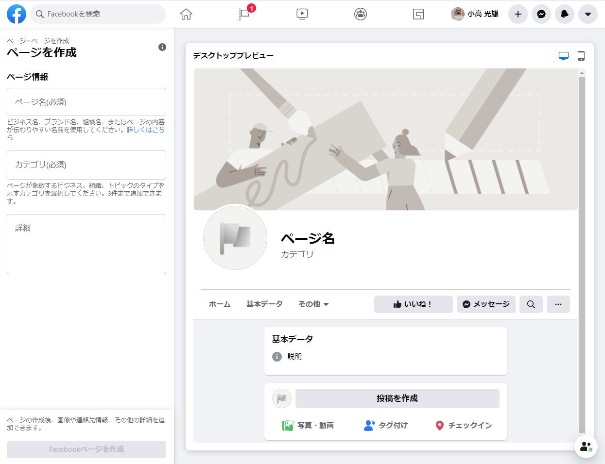 Faceboookページの開設は個人のFacebookのアカウントがあれば簡単だ。