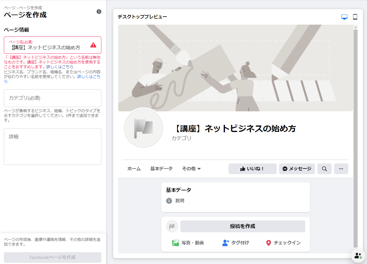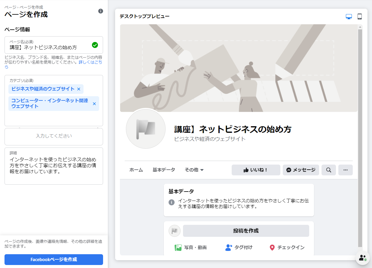 ページ名・カテゴリ・ページ詳細を設定すれば簡単にFacebookページを開設できる