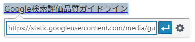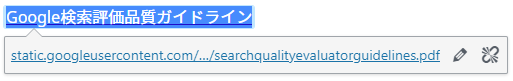 結果的に下の様にGoogle検索評価品質ガイドラインの文字が青色になり下線が引かれた状態になる。(※リンクの文字色は変更可能なのでここでは色を変更していない場合を示す)
